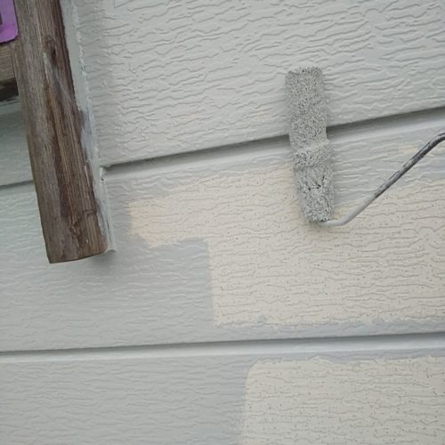 • S様(新発田市): 会社建物の外壁塗装で下塗りを行いました。建物の顔となる外壁を、丁寧に仕上げていきます。