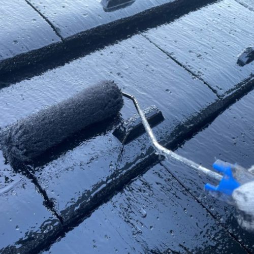 新発田市のK様邸では、屋根塗装の仕上げ作業に入りました。K様邸は戸建て住宅で、特に屋根は日差しや雨風の影響を直接受けるため、材質により定期的な塗装メンテナンスが必要不可欠です。作業工程としては、まず劣化した旧塗膜を高圧洗浄で丁寧に除去し、下地の状態を整えました。その後、下塗り材で屋根材の吸い込みを抑え、上塗り塗料の密着性を高めます。屋根塗装は、建物の美観を向上させるだけでなく、雨漏りのリスクを軽減し、住まいの耐久性を高める上で非常に重要な工事です。