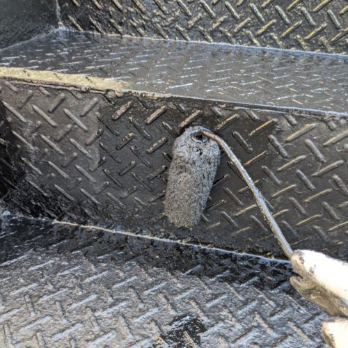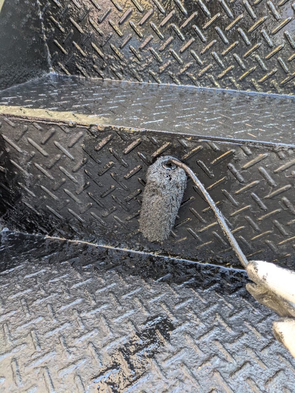 本日は、まず新発田市H様邸にて、付帯部の塗装作業を行いました。特に、建物の耐久性を左右する鉄部のさび止め塗装に力を入れ、丁寧に下地処理を施した後、防錆効果の高い塗料をしっかりと塗布いたしました。さらに、軒天の中塗り作業も実施し、美しい仕上がりと長期的な保護を両立させています。外壁塗装と同様に、付帯部の塗装メンテナンスも建物の寿命を延ばす上で欠かせません。