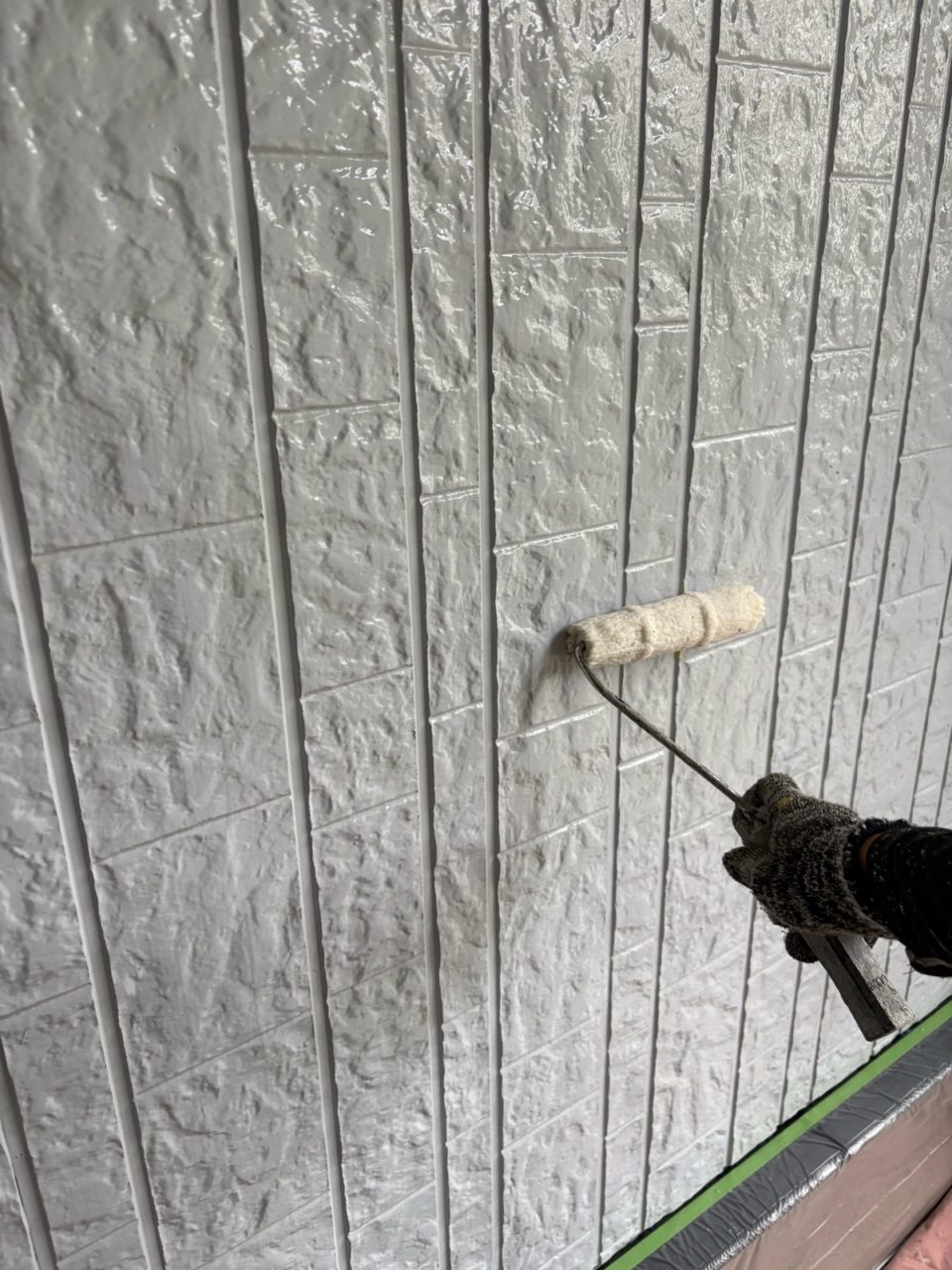 新潟市のF様の現場では、本日外壁の上塗り2回目の作業に取り掛かりました。塗料が持つ本来の性能を最大限に引き出し、美しい仕上がりと耐久性を確保するために欠かせない作業です。これにより、外壁塗装の美しさが長持ちし、紫外線や雨風からお住まいをしっかりと守ります。