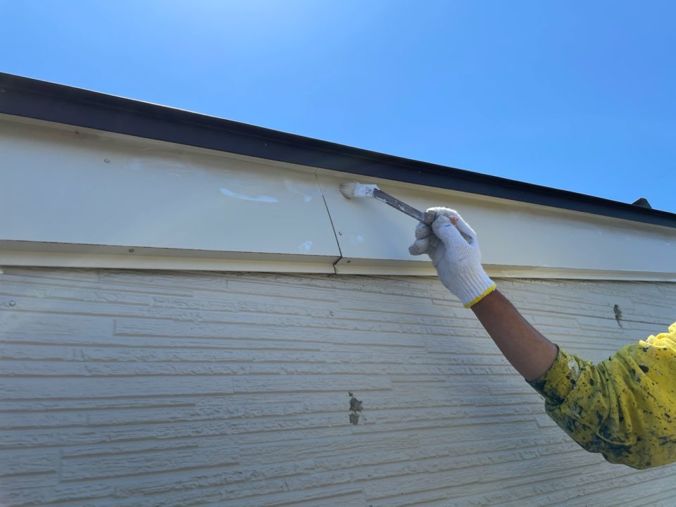 新発田市のK様邸では、外壁塗装の耐久性を左右する重要な工程である「中塗り」を行いました。中塗りは、塗膜に十分な厚みを持たせ、紫外線や風雨から建物を守るための肝心な作業です。K様邸の羽目板部分の塗装では、塗料が吸い込まれやすくムラになりやすい特性を考慮し、職人がハケとローラーを使い分け、丁寧に厚みを調整しながら塗り重ねる工夫を徹底しています。この「ひと手間」を惜しまない姿勢こそが、長期間にわたりお客様の大切なお住まいを守る塗装メンテナンスの鍵となります。